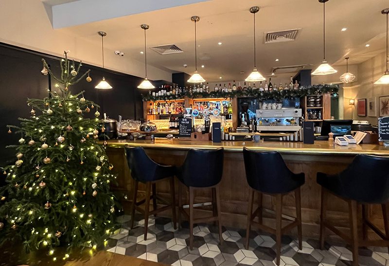 It's Christmas Eve, and we've just had breakfast in Coppa Club in Clifton Village in Bristol, as we wanted to go somewhere this morning so that we would get out and about and make the most of the day. We wanted to go somewhere that was a bit special, and we really like the interior at Coppa Club - mid-century with a modern twist - and the internal architecture of the building is quite interesting, with a mezzanine level.